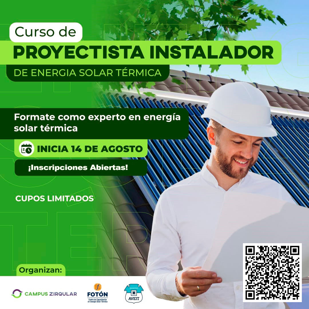 Incluye capacitación en diseño, venta e instalación de sistemas solares térmicos residenciales y de gran porte para agua caliente, climatización de ambientes y piscinas.