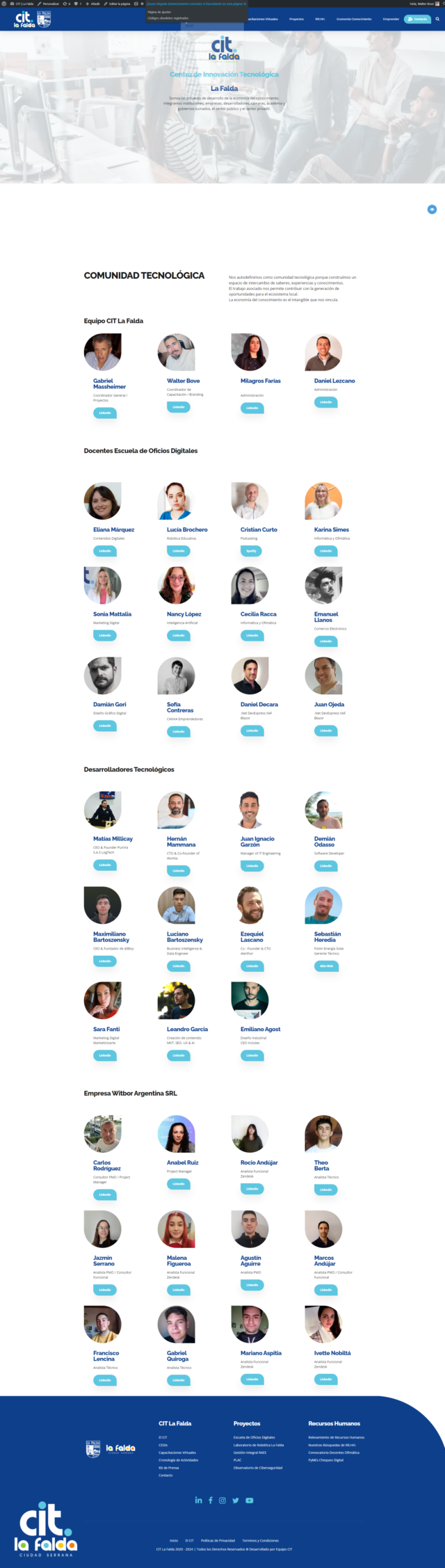Nos complace anunciar el lanzamiento de una nueva sección en el sitio web del Centro de Innovación Tecnológica (CIT), diseñada para reunir y destacar a la vibrante comunidad tecnológica que utiliza nuestros espacios para impulsar proyectos de colaboración, innovación y aprendizaje.