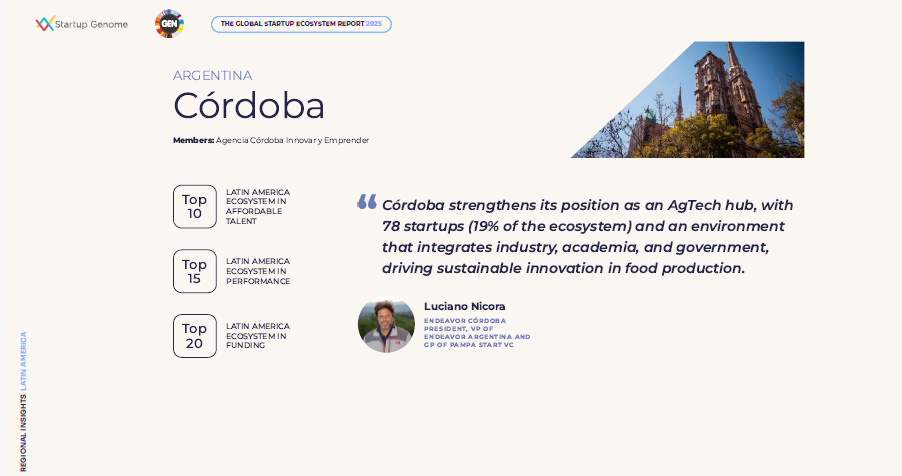 Startup Genome, organización que elabora el informe más completo del mundo sobre innovación y emprendimiento, ubicó a la provincia de Córdoba entre los principales ecosistemas de América Latina en talento, financiamiento e innovación.