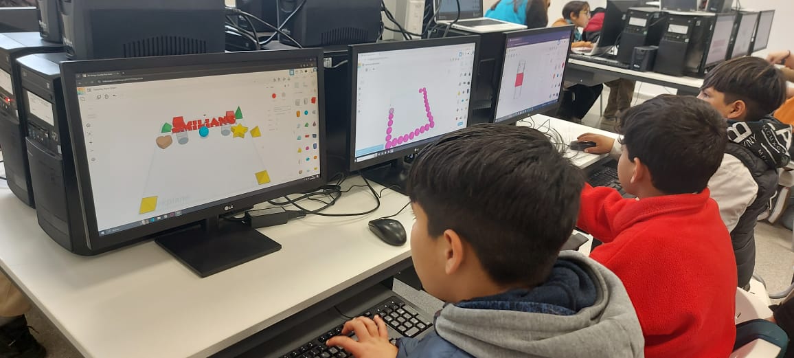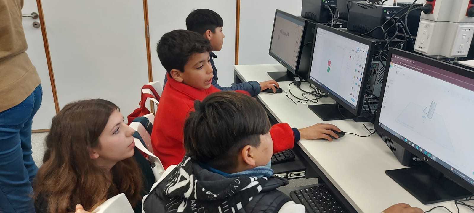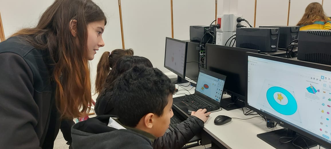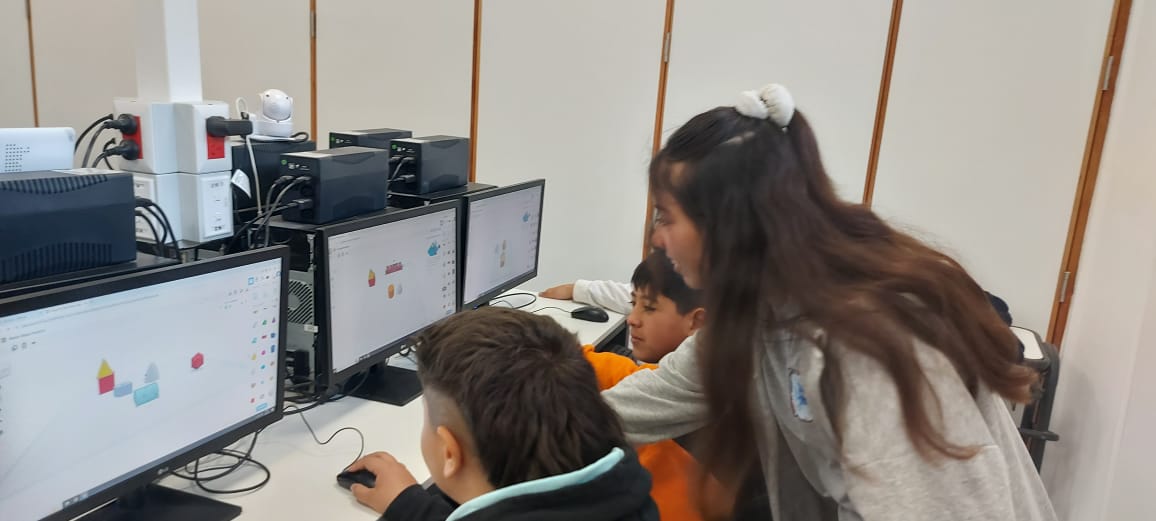 En esta primera jornada, estudiantes de 6º grado de la Escuela Aeronáutica Argentina, acompañados por la docente Karina Simes, participaron de una clase práctica en las instalaciones de la Escuela ProA, donde comenzaron a trabajar en el diseño y modelado 3D de cohetes y satélites, guiados por un equipo de estudiantes mentores de 3º, 4º y 5º año de la institución.