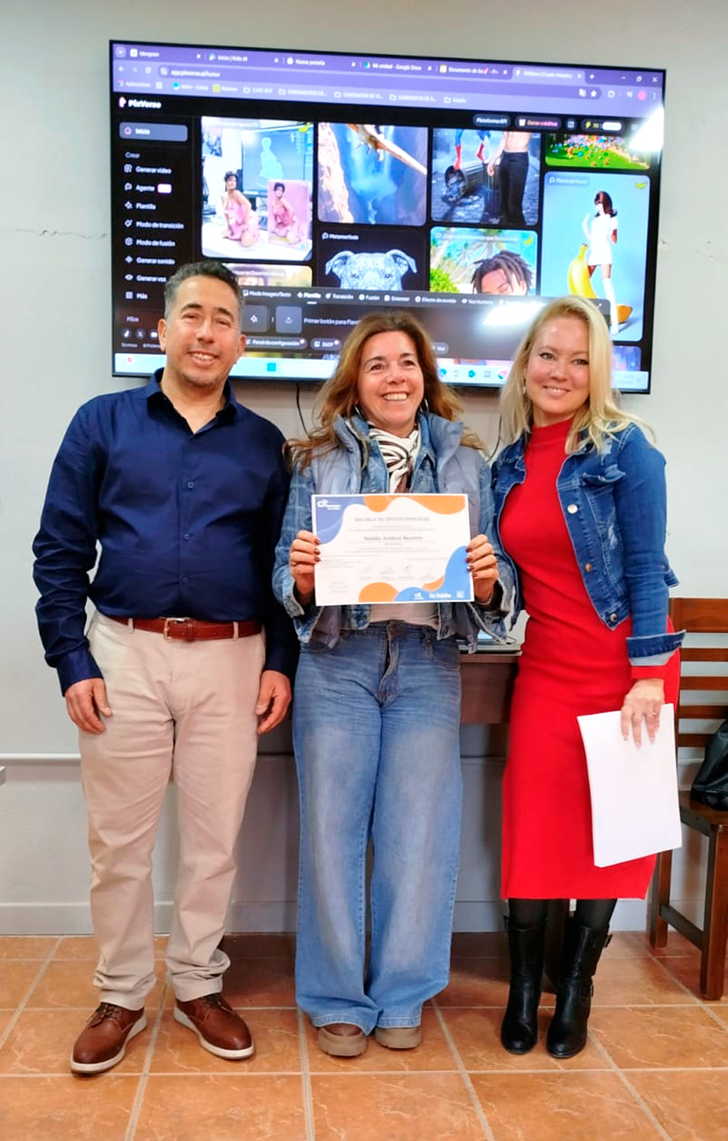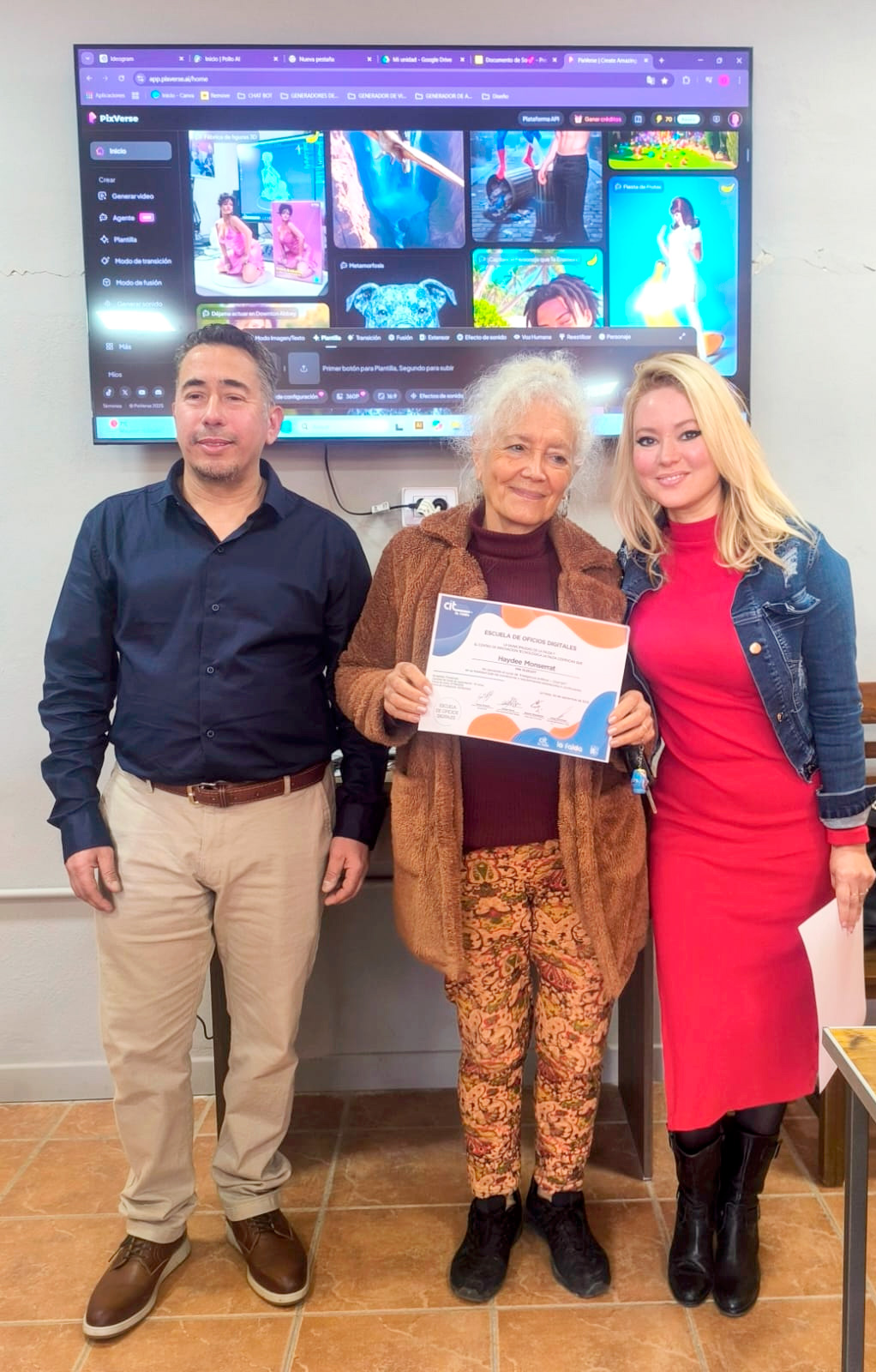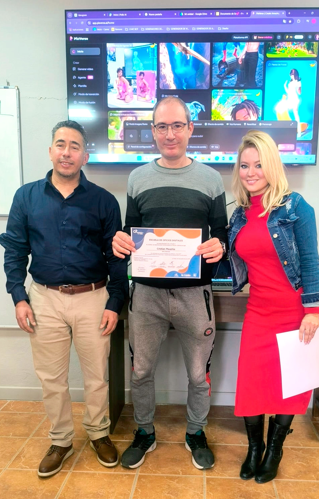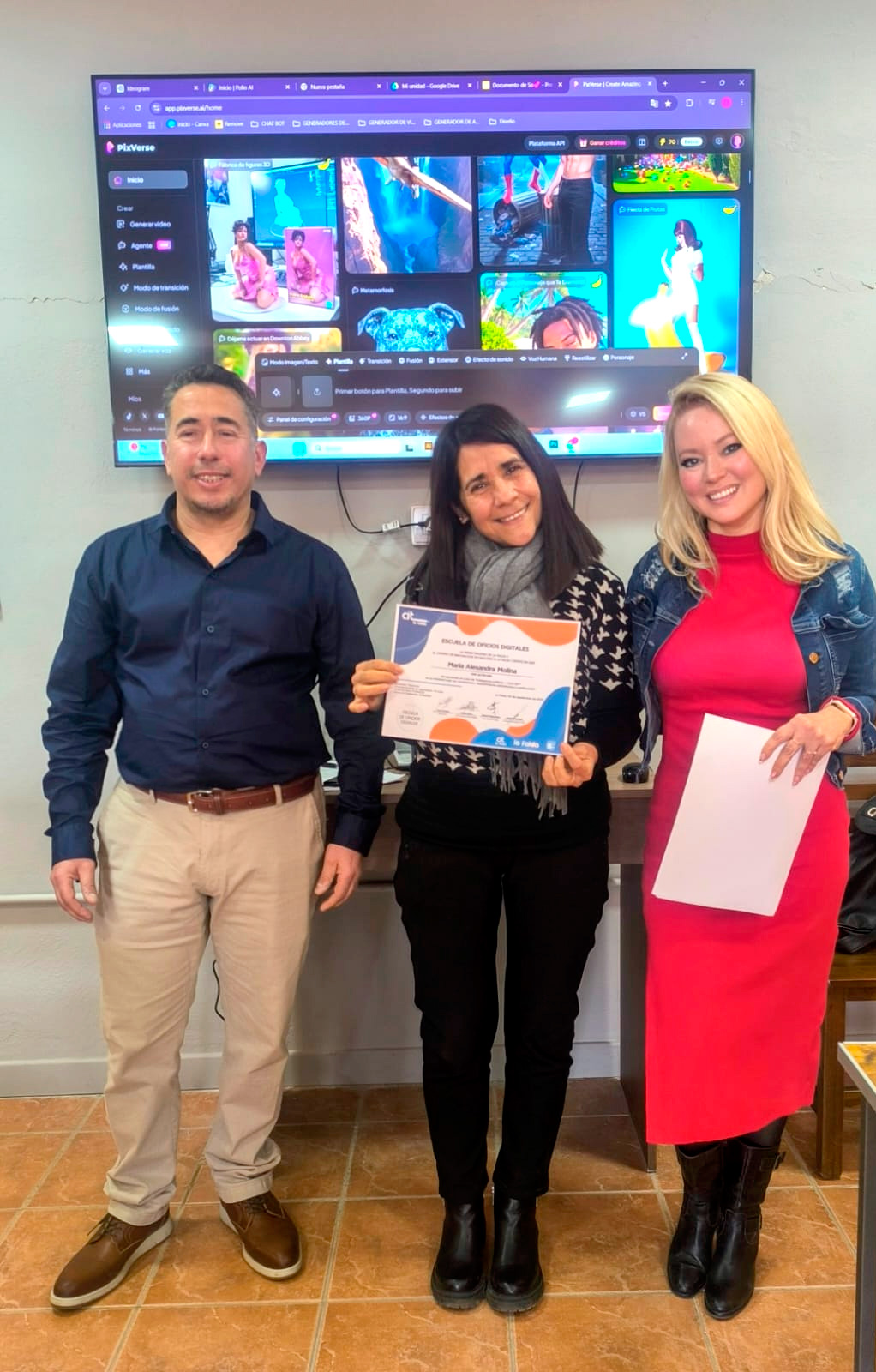 Durante 16 horas de formación intensiva, los participantes se introdujeron al fascinante mundo de la Inteligencia Artificial, aprendiendo a utilizar herramientas como ChatGPT, Gemini, generadores de imágenes (como DALL·E y Midjourney), de sonido, y otras plataformas innovadoras que están transformando la forma en que creamos y trabajamos.