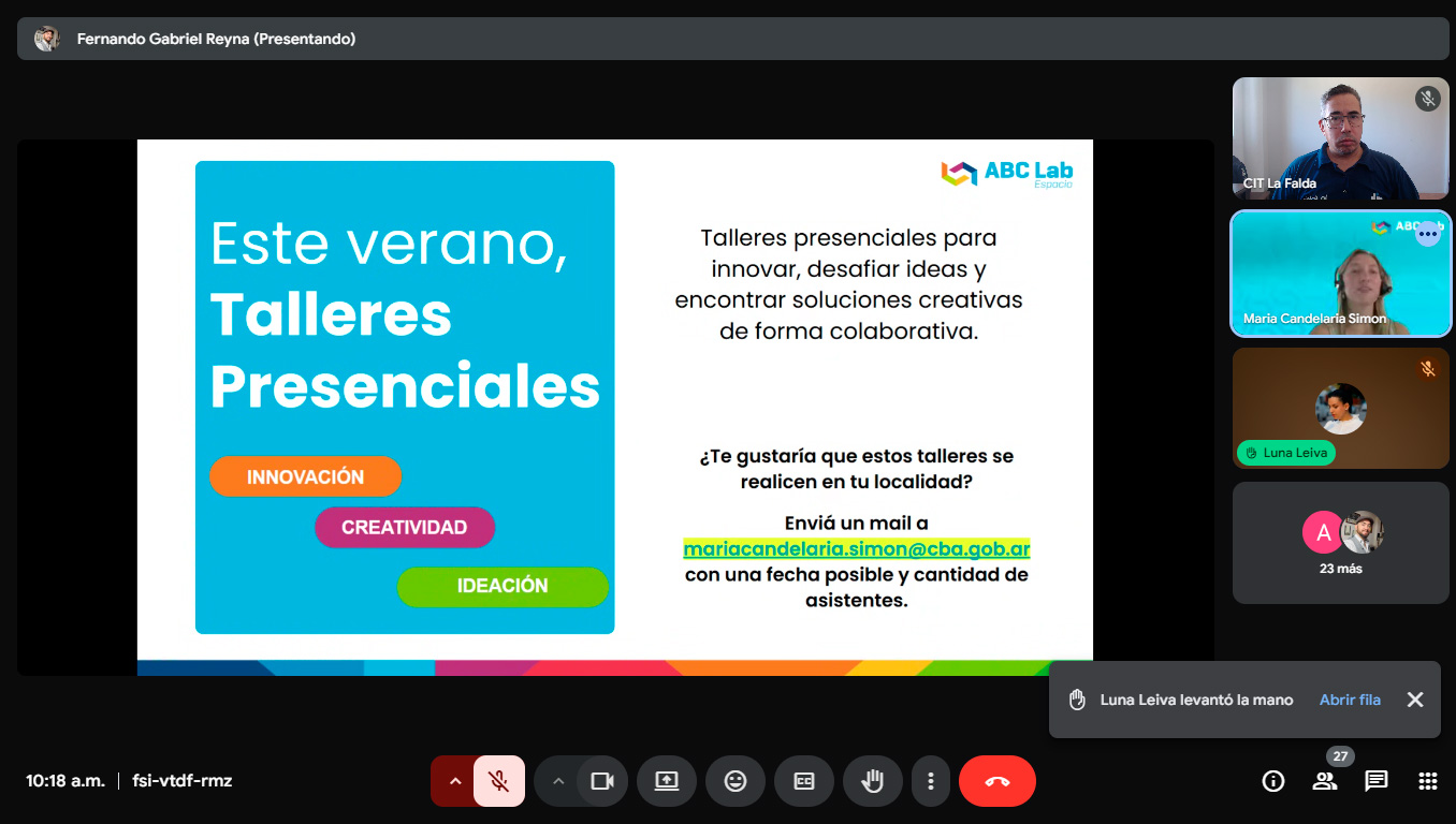 Esta mañana, el equipo del Centro de Innovación Tecnológica (CIT) participó de un encuentro virtual con referentes de la Agencia Córdoba Creatividad para coordinar el calendario de actividades del espacio ABC Labs.